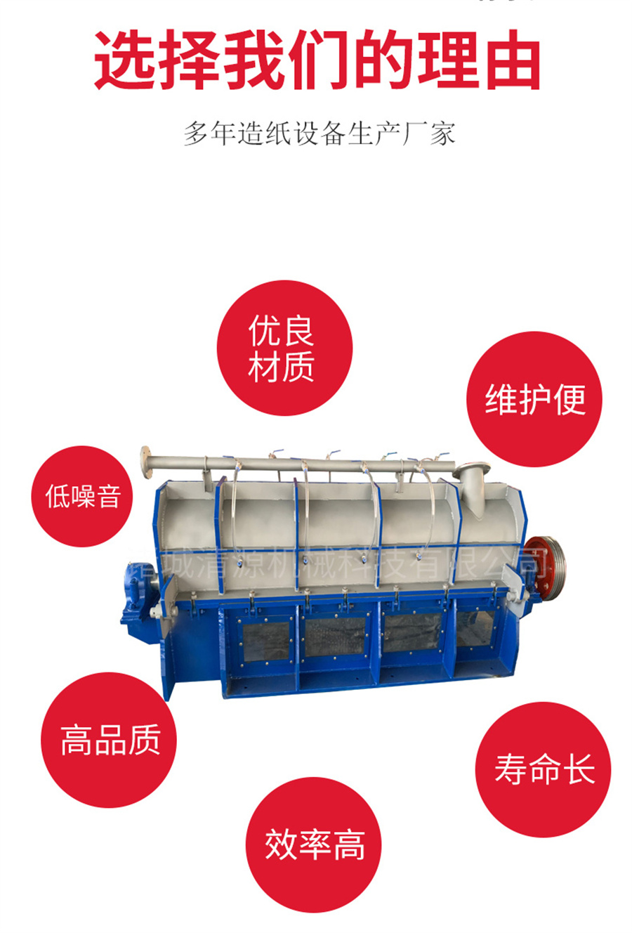 此外我公司還生產(chǎn)碎漿機(jī)、壓力篩、螺旋蒸煮器、雙網(wǎng)濃縮擠漿機(jī)、洗漿機(jī)等造紙機(jī)械設(shè)備,歡迎咨詢(xún)訂購(gòu)!